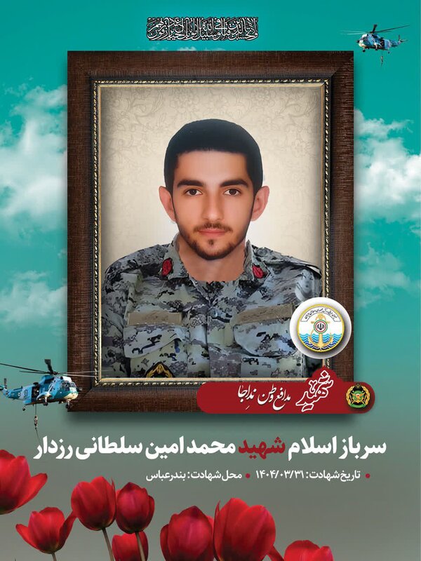 به گزارش بوشهر ۲۴ به نقل از فارس؛ سرباز اسلام محمد امین سلطانی‌رزدار متولد رضوانشهر استان گیلان، در حمله رژیم سفاک صهیونیستی در تاریخ ۳۱ خرداد ماه ۱۴۰۴ به منطقه یکم امامت بندرعباس مجروح شد و بعد از تحمل جراحات ناشی از این تجاوز وحشیانه به همرزمان شهید خود پیوست.