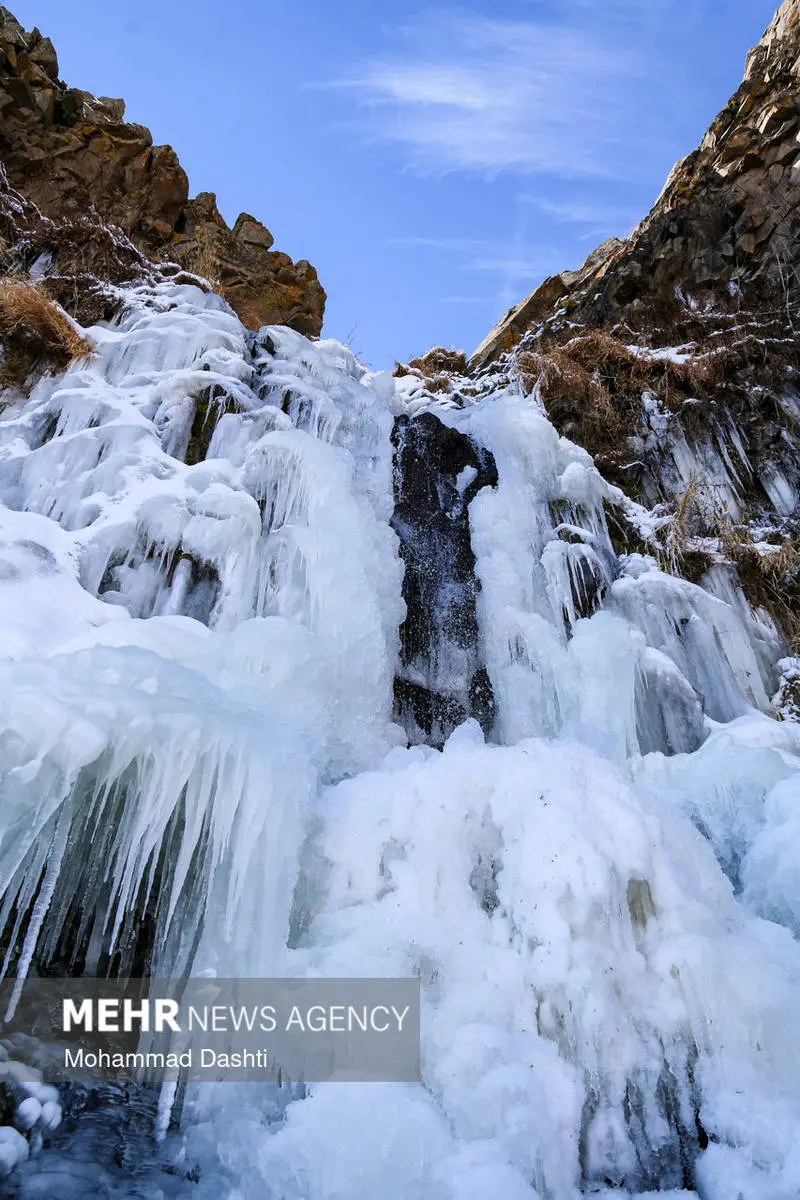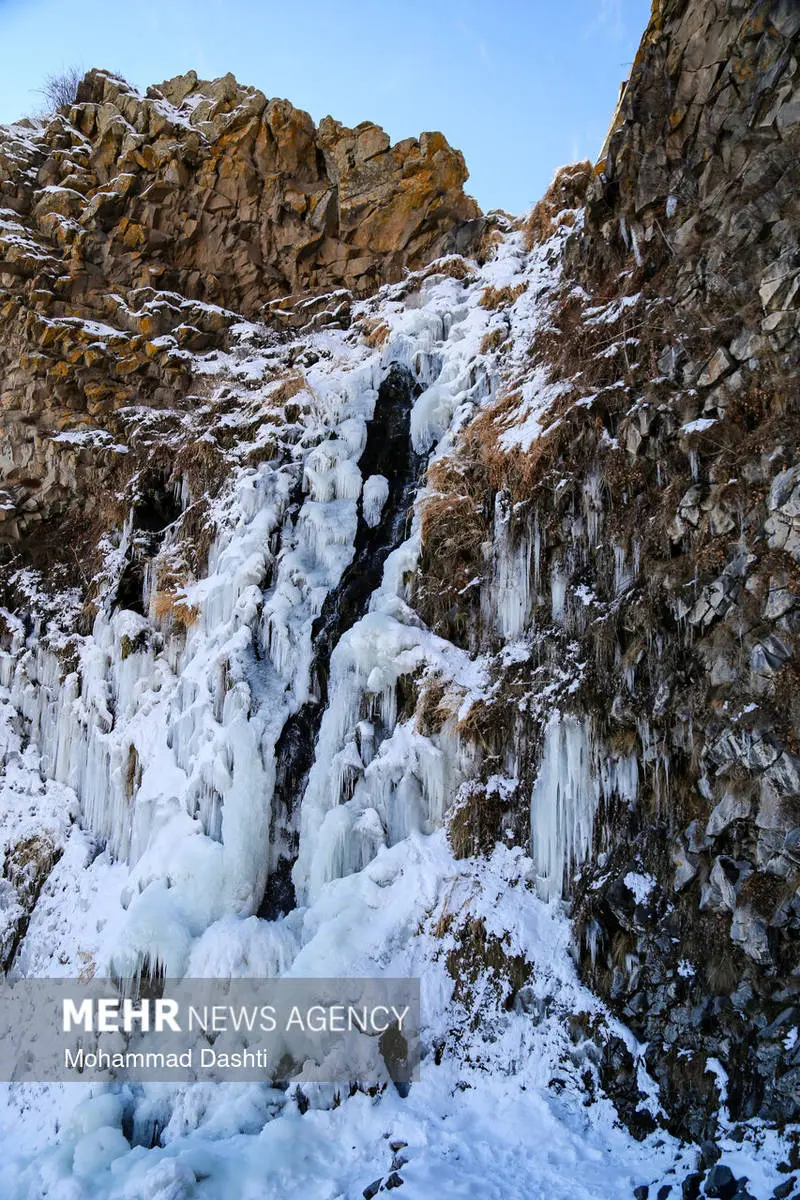 این روزها، بارش برف زمستانی روستای سردابه اردبیل را به سرزمین یخی تبدیل کرده است. آبشار این روستا هم مثل دیگر نقاط یخ زده و کاملاً سفیدپوش شده است.