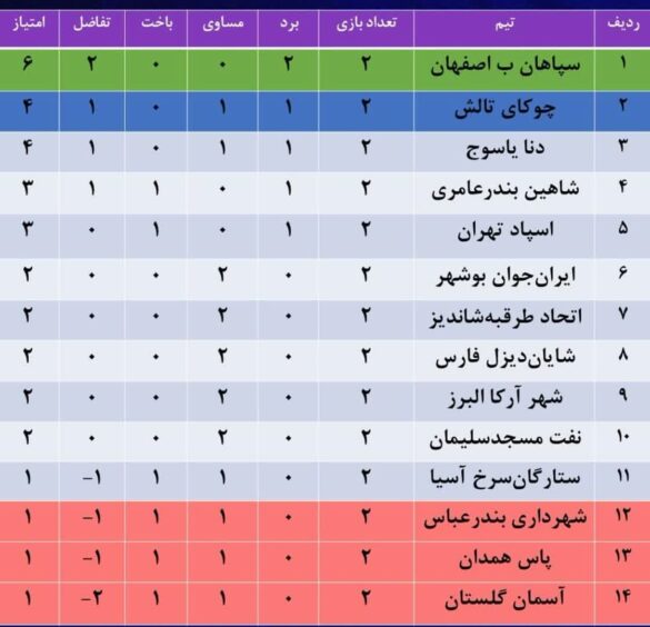 همچنین ایرانجوان بوشهر نیز در بازی اول در تهران به تساوی یک بر یک در برابر تیمستارگان سرخ رسید و در بازی دوم نیز در بوشهر در برابر تیم شهرآرکا البرز باز هم به تساوی یک بر یک رضایت داد.