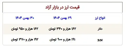 قیمت دلار امروز ۶۱۰ تومان بالا رفت و در آستانه ۱۶۳ هزار تومان به فروش میرسد. یورو نیز ۱۹۲ هزار و ۳۷۰ تومان به خریداران عرضه میشود.
