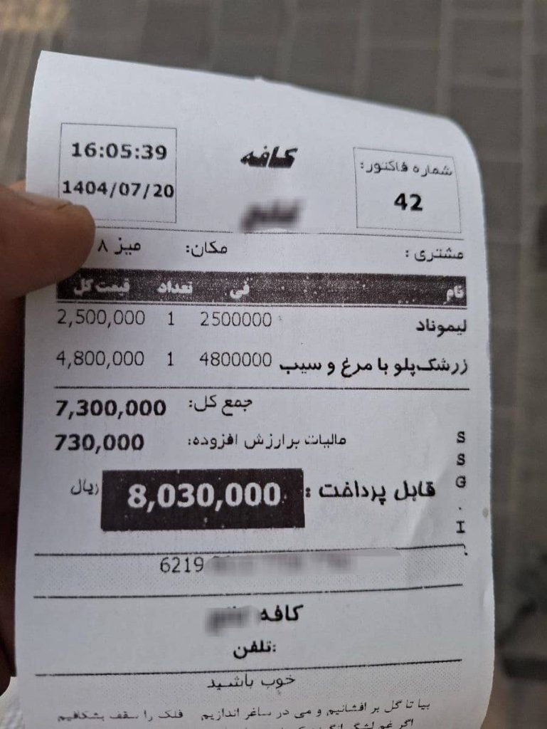 عکسی از فاکتور یک پرس زرشک‌پلو که شوکه‌تان می‌کند